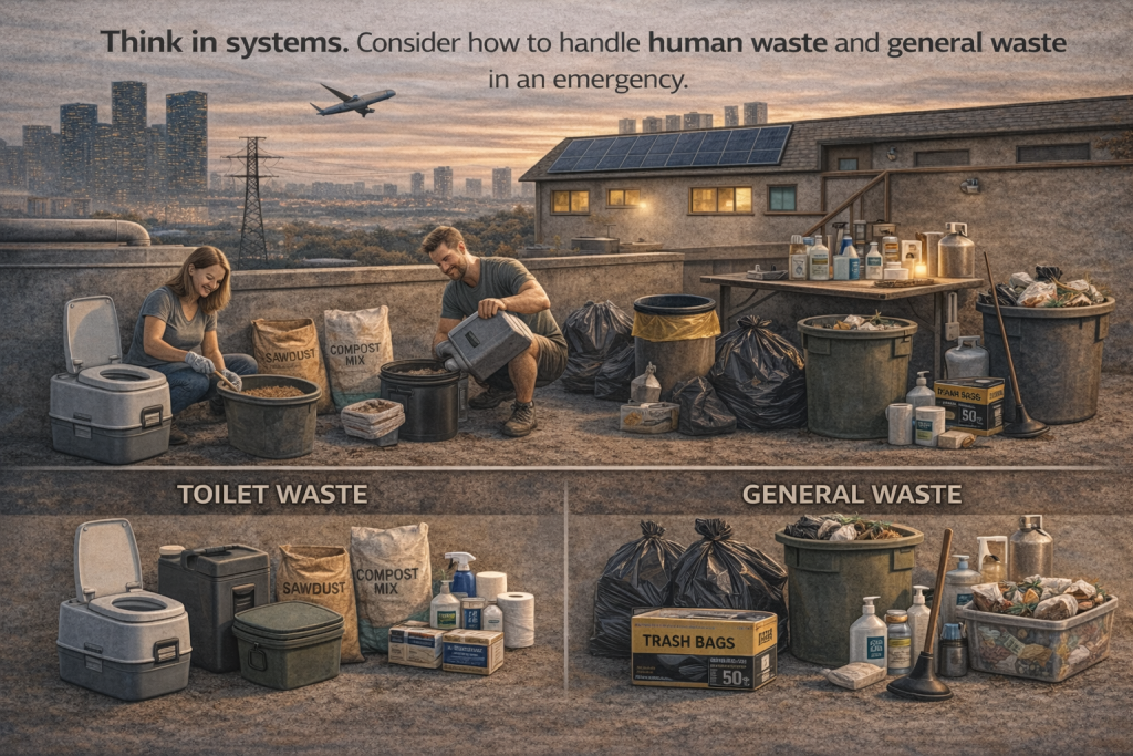 Just as important, prepare food, water, and waste plans.